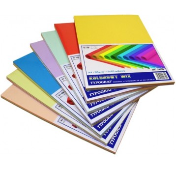 Papier kolorowy Typograf A4 mix 5 kolorów mieszanych op. - 100 ark.