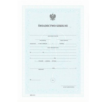 "MEN I/1/1 Świadectwo dla uczniów klas I-III szkoły podstawowej dla dzieci i młodzieży"