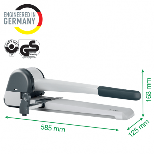 - wyposażony w długie ramię, co zmiejsza siłę nacisku niezbędną do przedziurkowania - dzięki temu bez wysiłku i jednorazowo można przedziurkować połowę ryzy