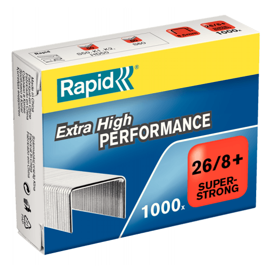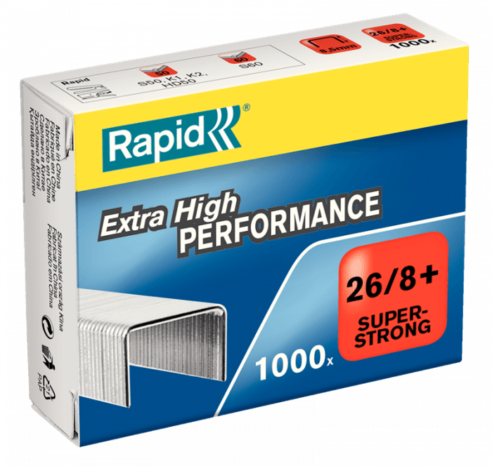 - zszywki Super Strong - wykonane z ekstra mocnej stali, długość nóżki do 8,5 mm dzięki czemu zszywają do 50 kartek lub więcej, najlepiej działają w zszywaczach Heavy Duty i lektrycznych