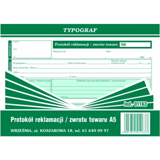 Protokół rekl/zwrotu towaru A5s Typograf 01163