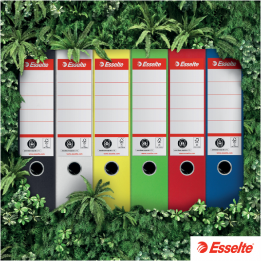 Segregator Esselte No. 1 ma pozytywny wpływ nie tylko na środowisko Twojego biura, ale także całej planety. Posiada certyfikaty Blue Angel i FSC®, wykonany jest w 100% z kartonu pochodzącego z recyklingu, w 100% nadaje się do ponownego przetworzenia i jest neutralny pod względem emisji CO2. Dzięki mechanizmowi dźwigniowemu No. 1 zapewnia doskonałą wydajność, objęty jest 3-letnią gwarancją i dostępny w 6 świeżych kolorach.