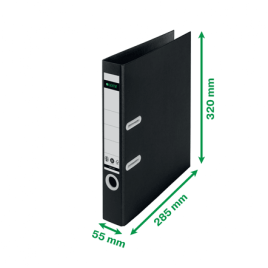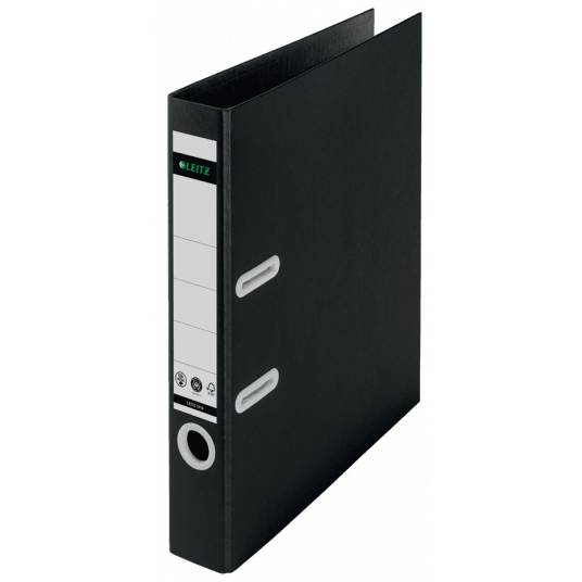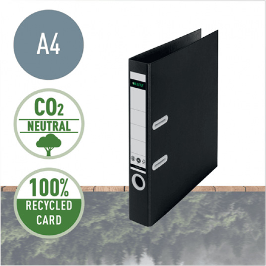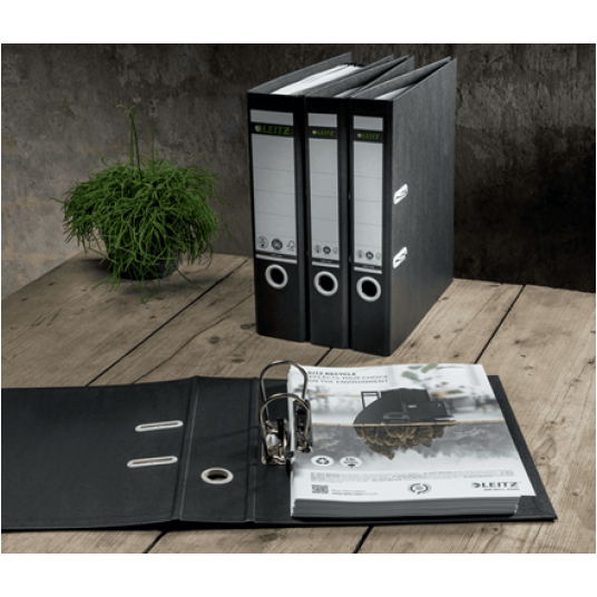 Najwyższej jakości segregator z mechanizmem dźwigniowym 180°, odpowiedni do przechowywania dokumentów w formacie A4. Karton w 100% pochodzi z recyklingu, jest neutralny dla klimatu i w 100% nadaje się do ponownego recyklingu. Certyfikat FSC i Blue Angel.